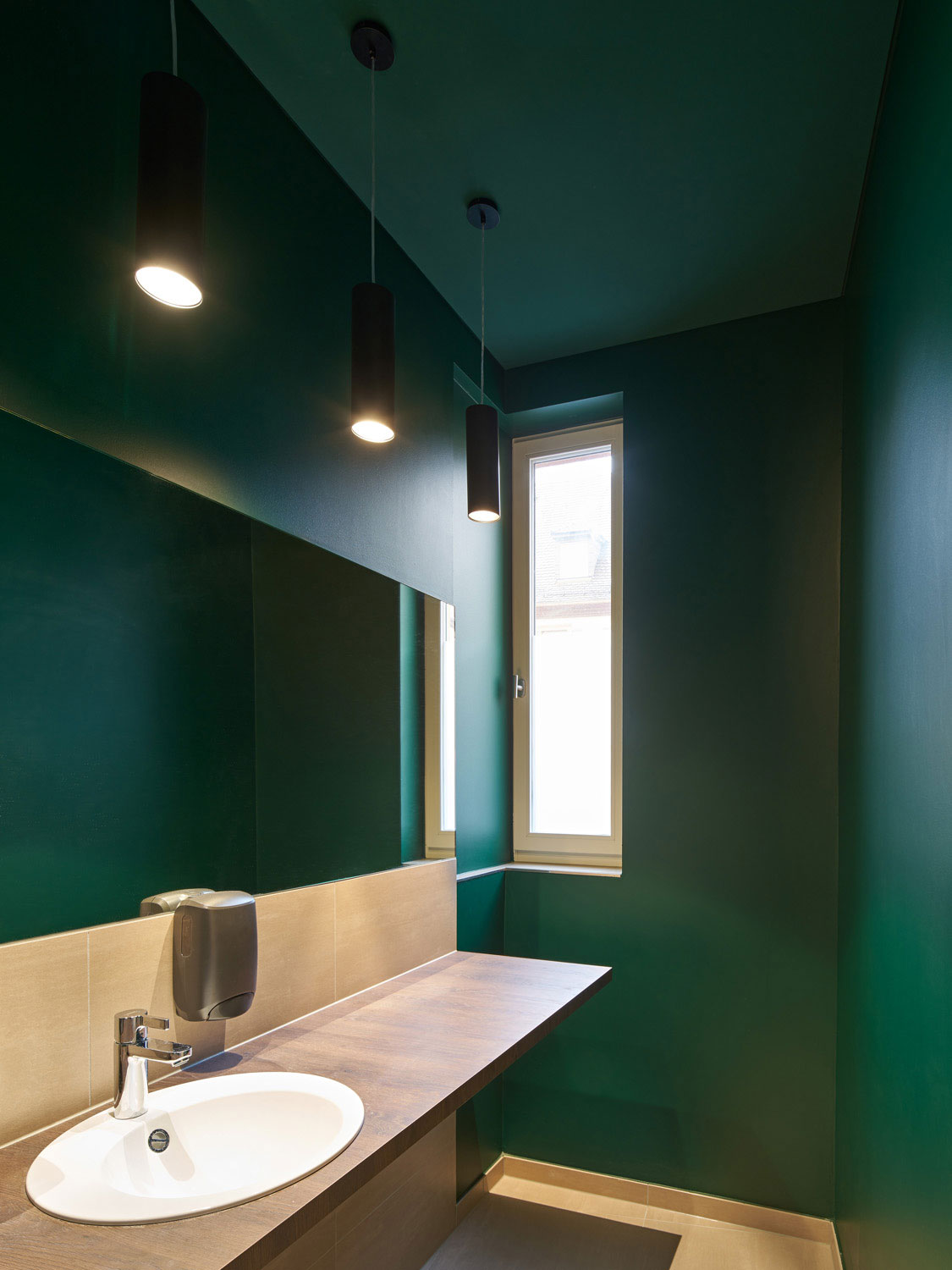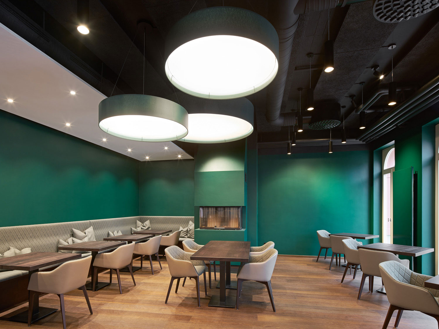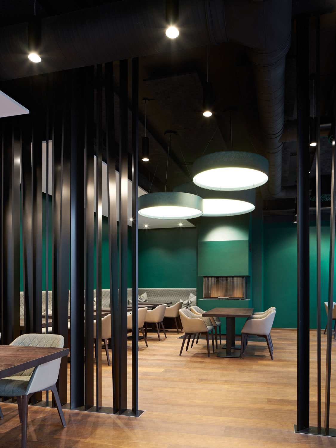 Um dem Gastronomen verschiedene Raummodelle anbieten zu können, entstand das durch einen Paravent separierte grüne Kaminzimmer, das sich vom großen Gastraum atmosphärisch unterscheidet. Insgesamt verfügen die „Ratsstuben“ nun über ein differenziertes Raumangebot, sodass vom Einzelgast, der größeren Gruppe bis zur geschlossenen Gesellschaft eine vielfältige Nutzung für den Betreiber möglich ist.