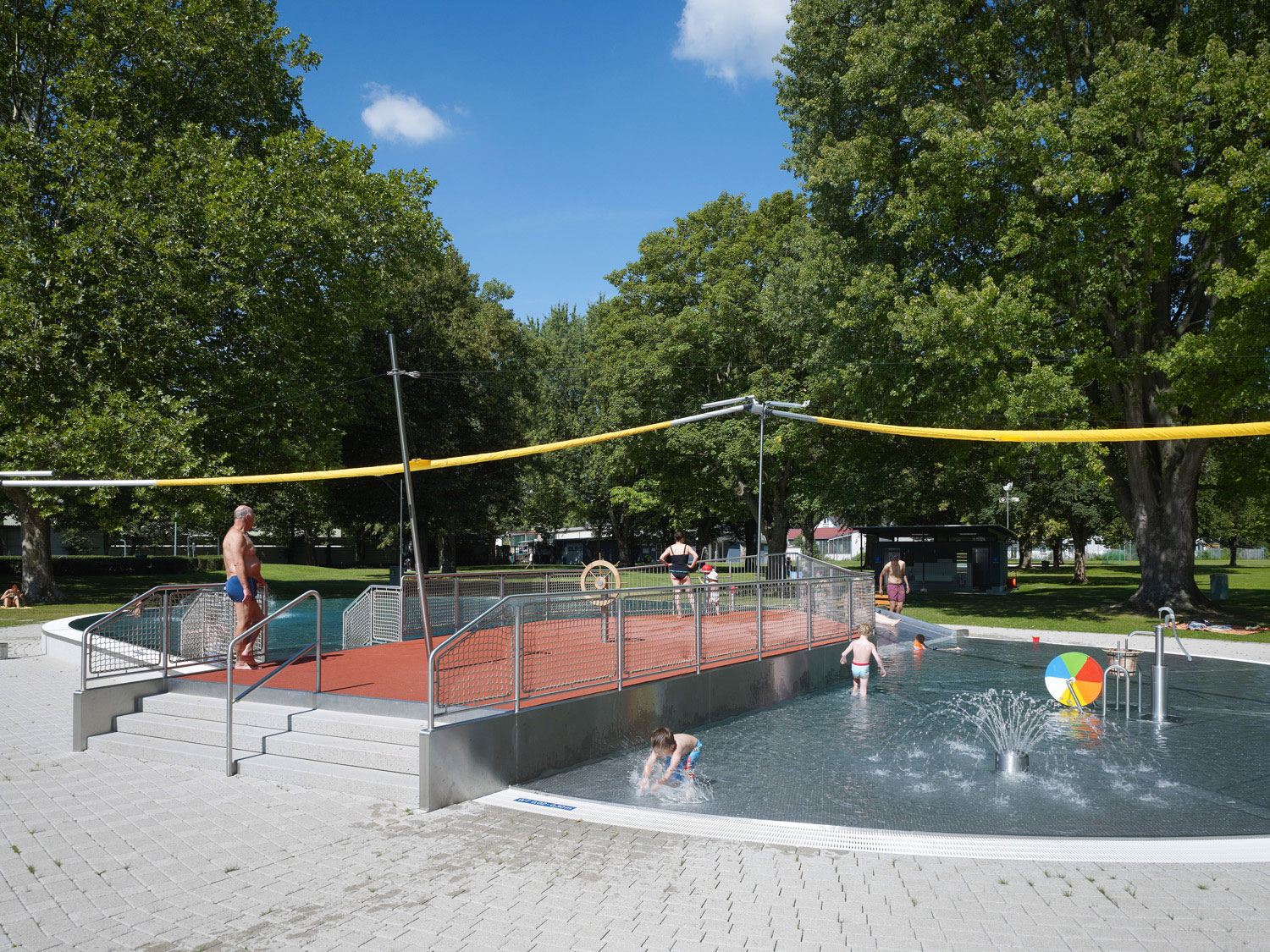 Das neue Kinder-/Planschbecken wird in die Kontur des bestehenden Planschbeckens eingebaut. Das Becken wird zusätzlich mit kindgerechten Attraktionen ausgestattet, mit der das Medium Wasser den Kindern nähergebracht werden soll.