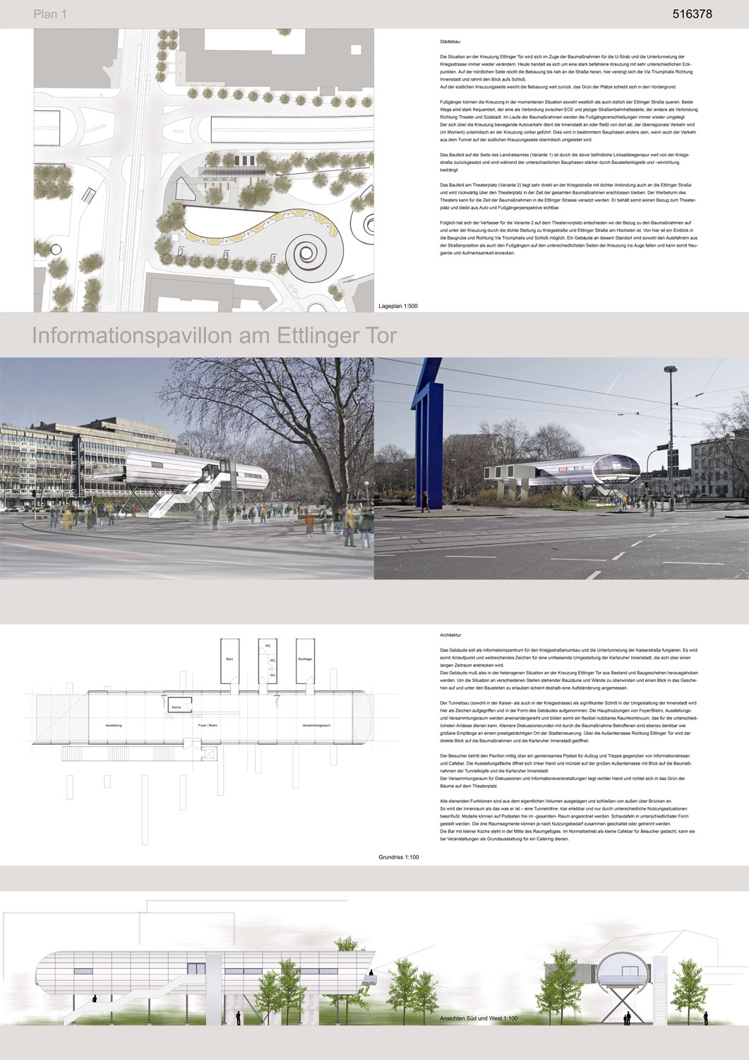 Kriegstraße einen Informationspavillon am Ettlinger Tor in Karlsruhe zu