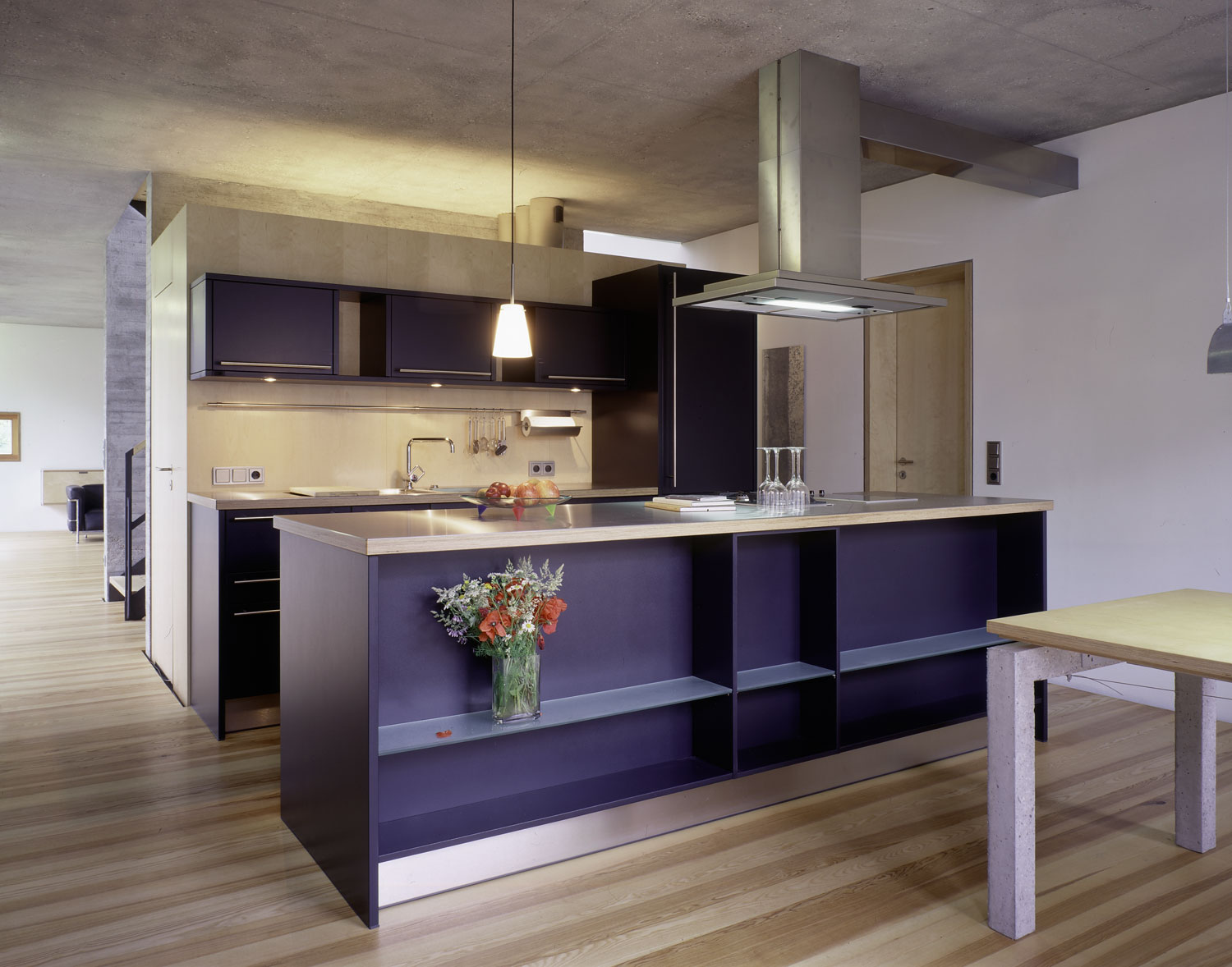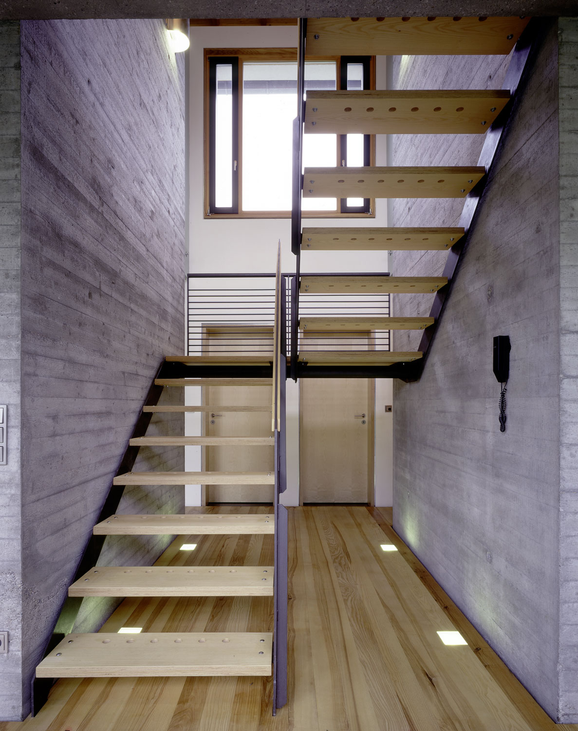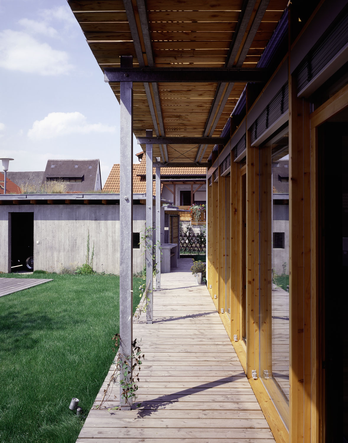 Entwurf der Möbel Pfahlgründung Regenwasserzisterne für Waschmaschiene, WCs Auszeichnungen: BDA-Auszeichnung guter Bauten, 1999 Architekturpreis Einfamilienhäuser der Reiners-Stiftung, 1999