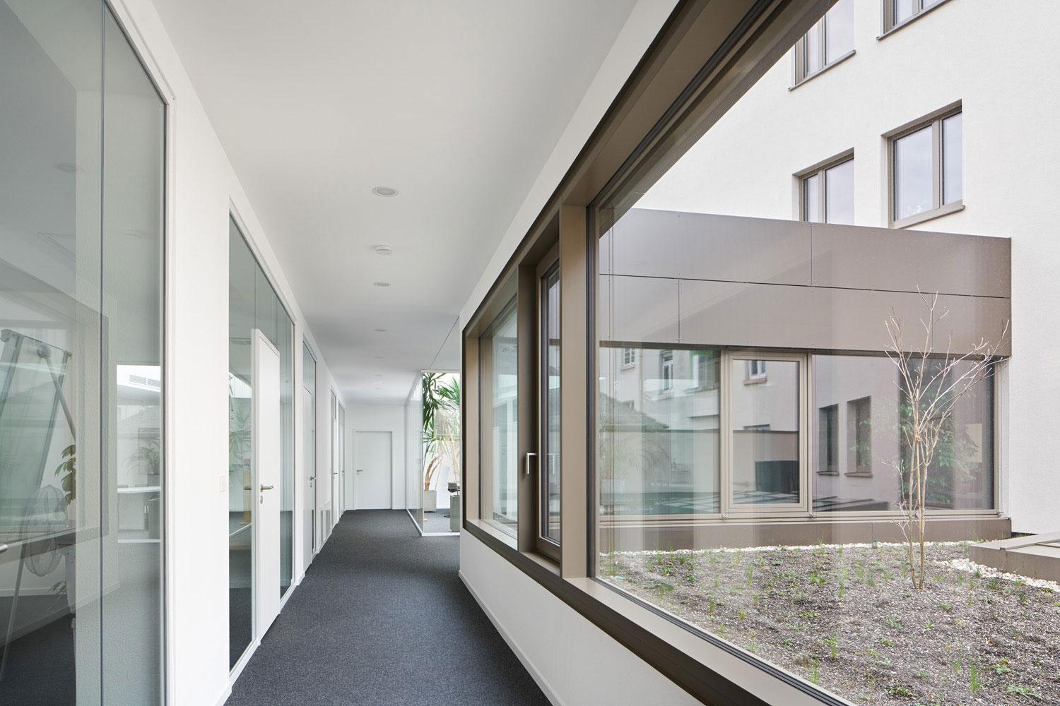 Das hochattraktive Grundstück war planerisch und bautechnisch betrachtet jedoch extrem anspruchsvoll, da es zu 100 % überbaut werden musste. Die dreiseitig vorhandenen Grenzbebauungen aus der Gründerzeit mussten alle aufwendig unterfangen werden. Die Baugrube musste ebenso allseitig mit tiefem, rückverankertem Pfahlwandverbau gesichert werden, wie die angrenzende Straße mit Schwerlast- und Straßenbahnverkehr. Der Baugrund mit schlechtester Tragfähigkeit forderte eine Pfahlgründung, das Grundwasser über Baugrubensohle eine HDI-Sohle.