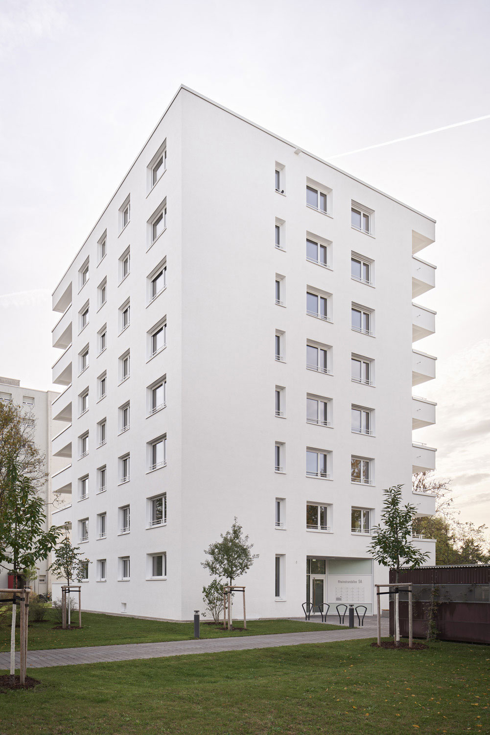 Am südlichen Rand des Karlsruher Stadtteils Daxlanden liegt der Gestadebruch des Rheins. Im Folgenden beginnen die tieferliegenden Rheinauen. An dieser Geländekante endet die Wohnbebauung. Im Eigentum der städtischen Wohnbaugesellschaft reihen sich mehrere 8-geschossige Punkthäuser aus den 70er Jahren, die in einer zusammenhängenden Grünanlage liegen. Dazwischen lag noch eine unbebaute Fläche, die den Platz für einen weiteren dieser Bausteine bot.