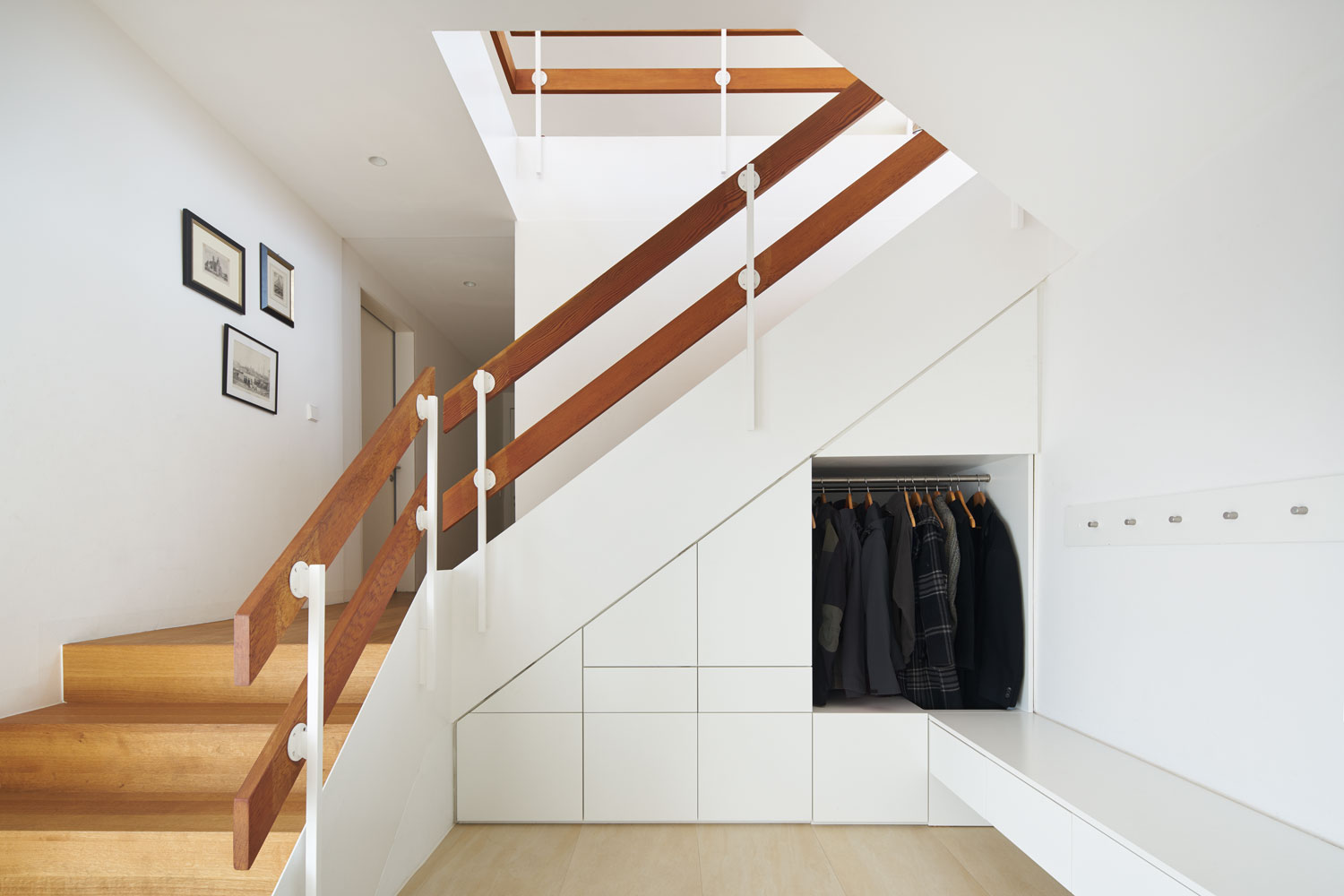 Der wohldurchdachte Grundriss und die Zweigeschossigkeit wurden erhalten. Zwei in den Hang geschobene, rechteckige Baukörper stehen zueinander versetzt und werden im Bereich ihrer Überschneidung über ein offenes Treppenhaus erschlossen.