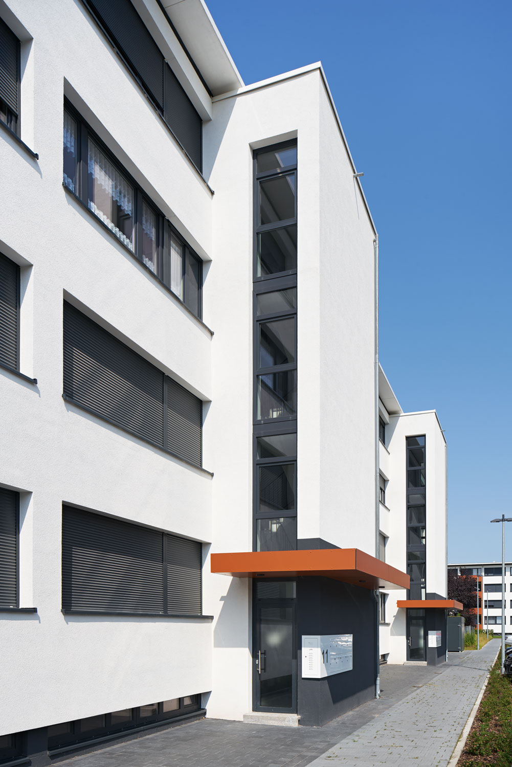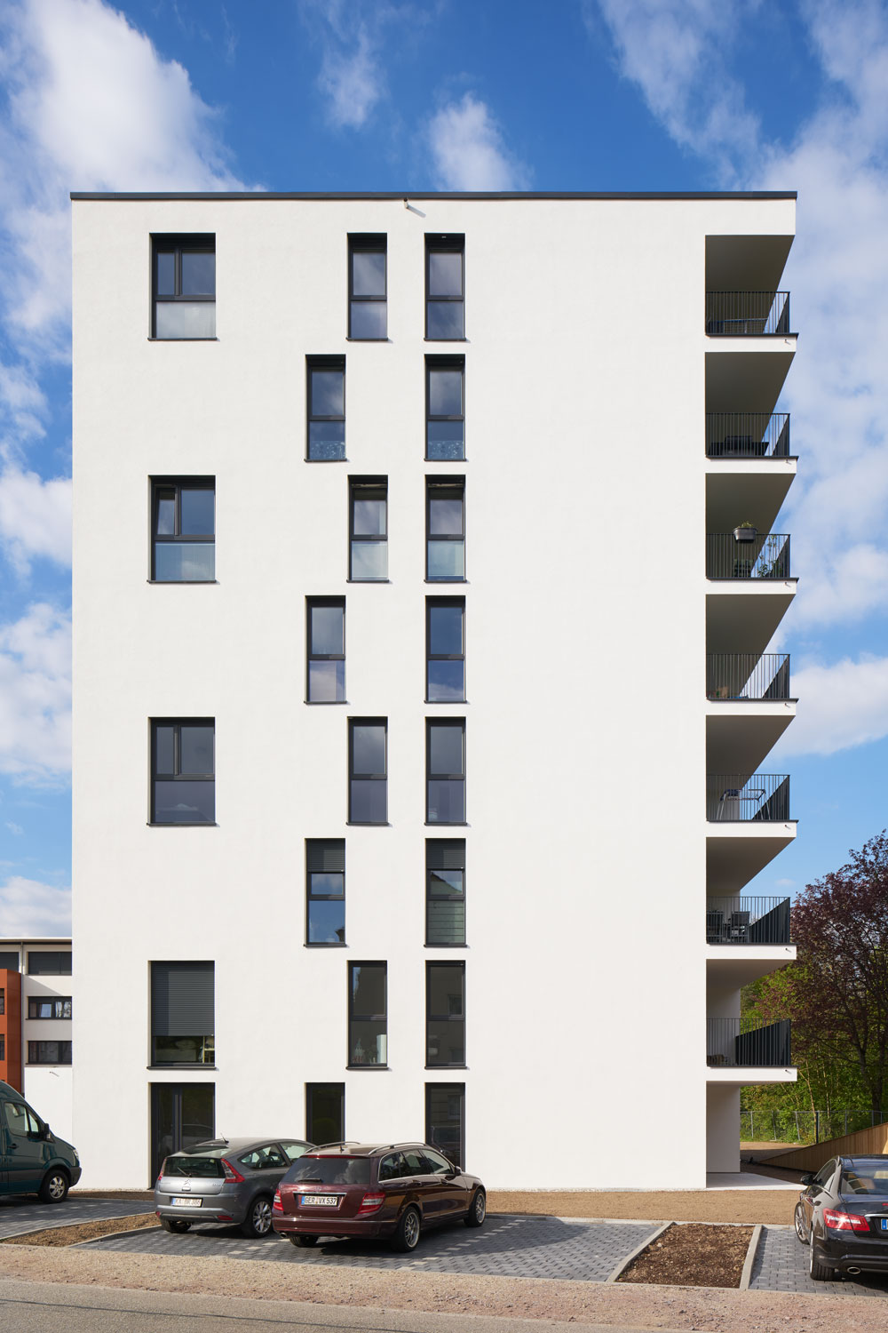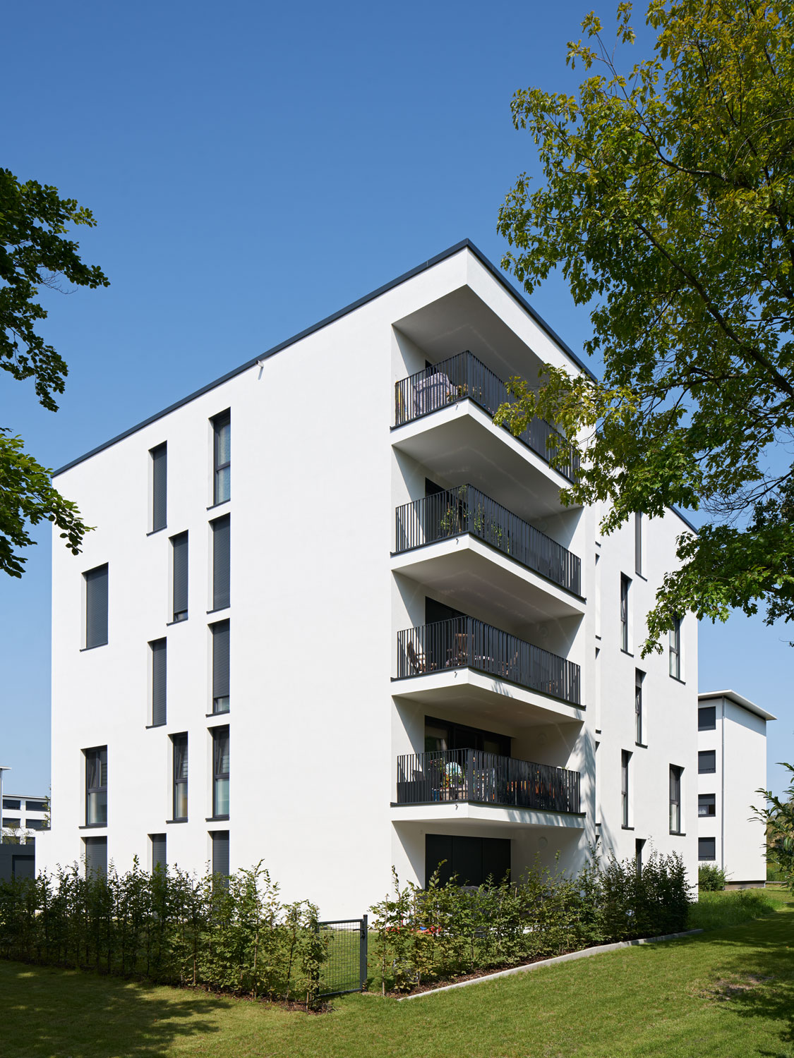 Die Besonderheit der neuen Gebäude liegt in der Flexibilität hinsichtlich Zusammenstellung und Ausrichtung der Wohnungen. Alle Wohnungsgrundrisse basieren auf dem gleichen Grundprinzip, die Zahl der Kombinationsmöglichkeiten erhöht sich durch die mögliche Spiegelung der 3- und 4-Zimmer-Wohnungen in Ost-West und Nord-Süd-Richtung. Diese Variabilität setzt sich in den Fassaden fort, wo die aufgelockerte Anordnung von Fenstern und Loggien spannungs- und abwechslungsreiche Ansichten bietet. Für den Betrachter stammen die Häuser aus demselben Baukasten, jedes Gebäude ist dabei ein Unikat.
