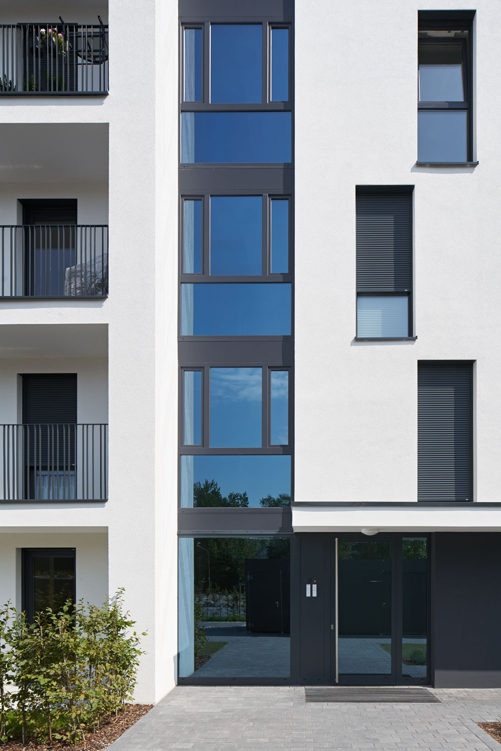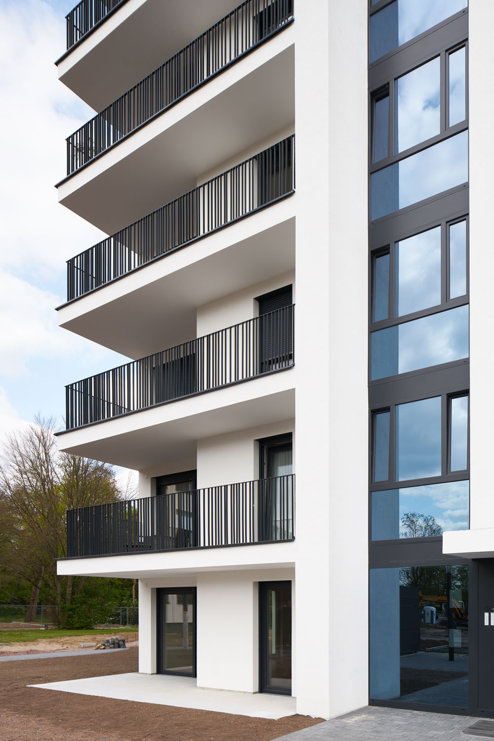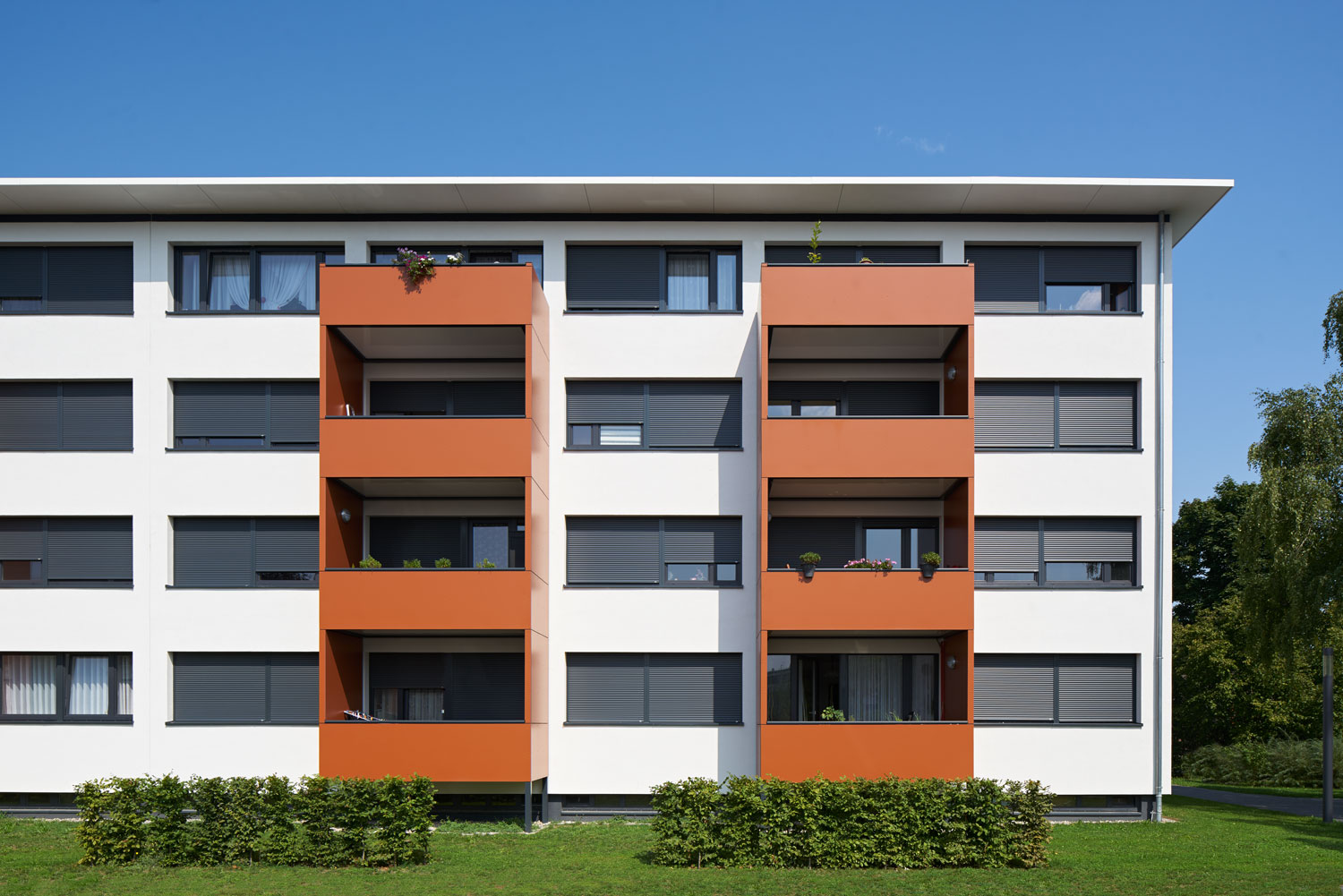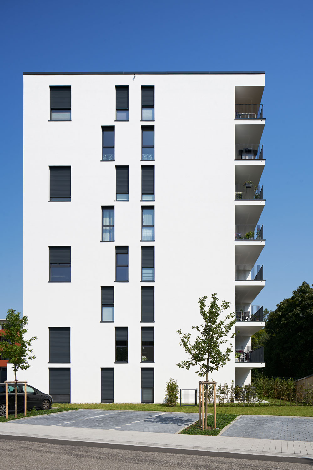 Die Besonderheit der neuen Gebäude liegt in der Flexibilität hinsichtlich Zusammenstellung und Ausrichtung der Wohnungen. Alle Wohnungsgrundrisse basieren auf dem gleichen Grundprinzip, die Zahl der Kombinationsmöglichkeiten erhöht sich durch die mögliche Spiegelung der 3- und 4-Zimmer-Wohnungen in Ost-West und Nord-Süd-Richtung. Diese Variabilität setzt sich in den Fassaden fort, wo die aufgelockerte Anordnung von Fenstern und Loggien spannungs- und abwechslungsreiche Ansichten bietet. Für den Betrachter stammen die Häuser aus demselben Baukasten, jedes Gebäude ist dabei ein Unikat.