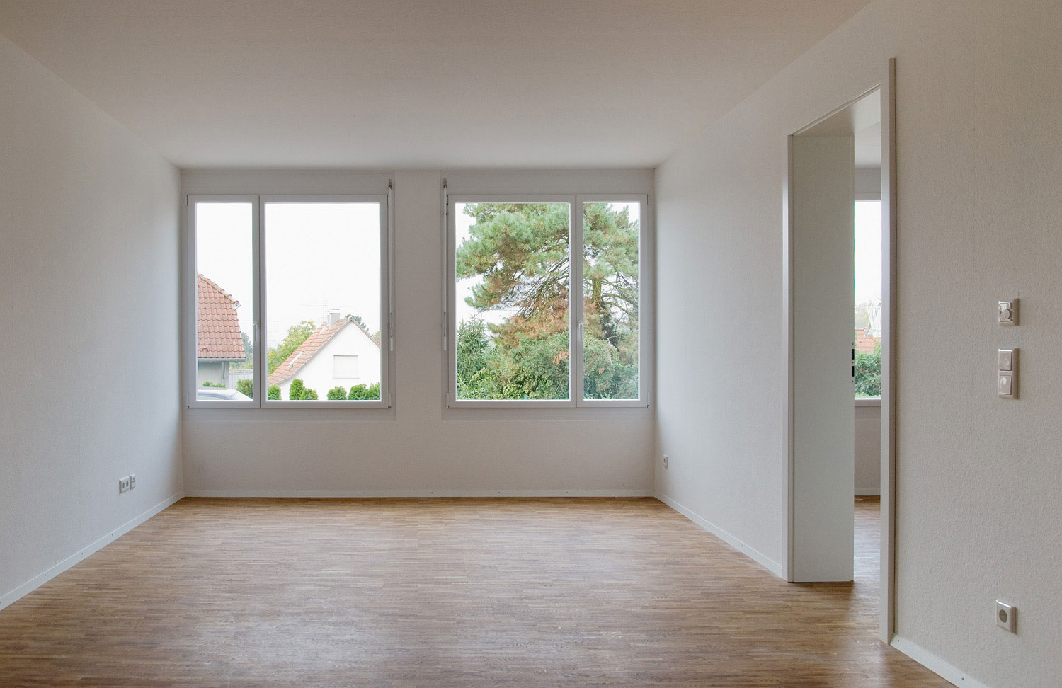 Auf dem schmalen, langen Grundstück im Ortskern von Rheinstetten stand ein sanierungsbedürftiger Altbau. Der Bebauungsplan ließ ein Vorder- und ein Rückgebäude zu, jedoch mit der Auflage, dass das Vorderhaus genau an der gleichen Stelle stehen musste wie der zum Abriss freigegebene Altbau.
