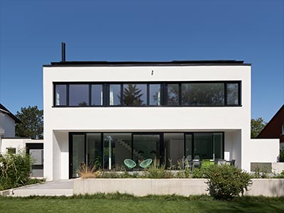 Das Wohnhaus S in Karlsruhe besticht nicht nur durch seine klaren äußeren Formen, sondern auch durch die stilsichere und farblich harmonische Inneneinrichtung.