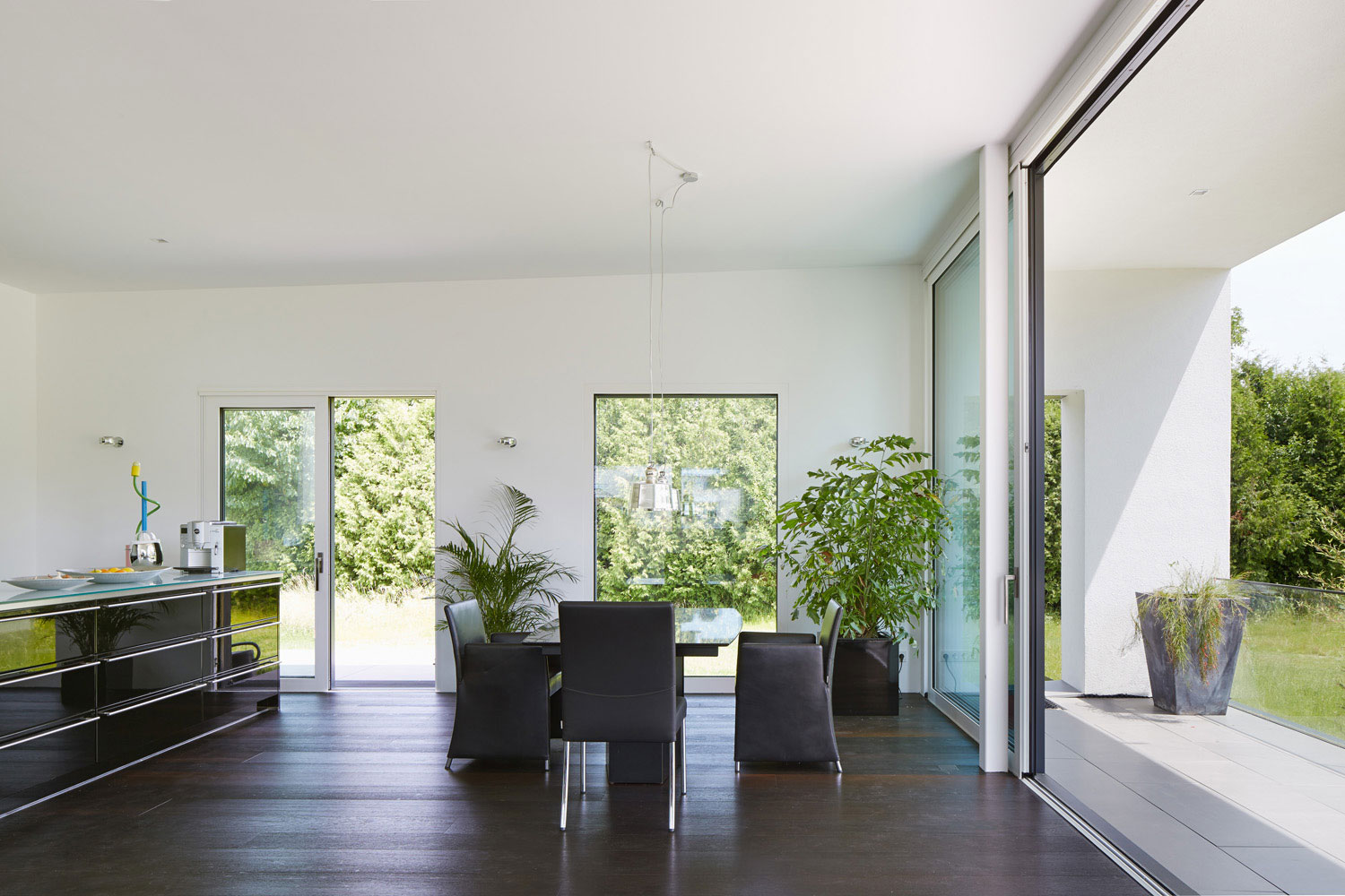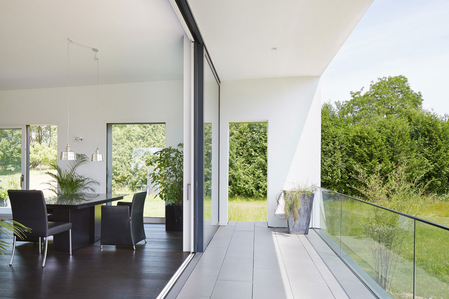 Der Bezug nach außen und der Ausblick in die weite Landschaft war das zentrale Anliegen des Bauherrn und Grundgedanke des Entwurfs.