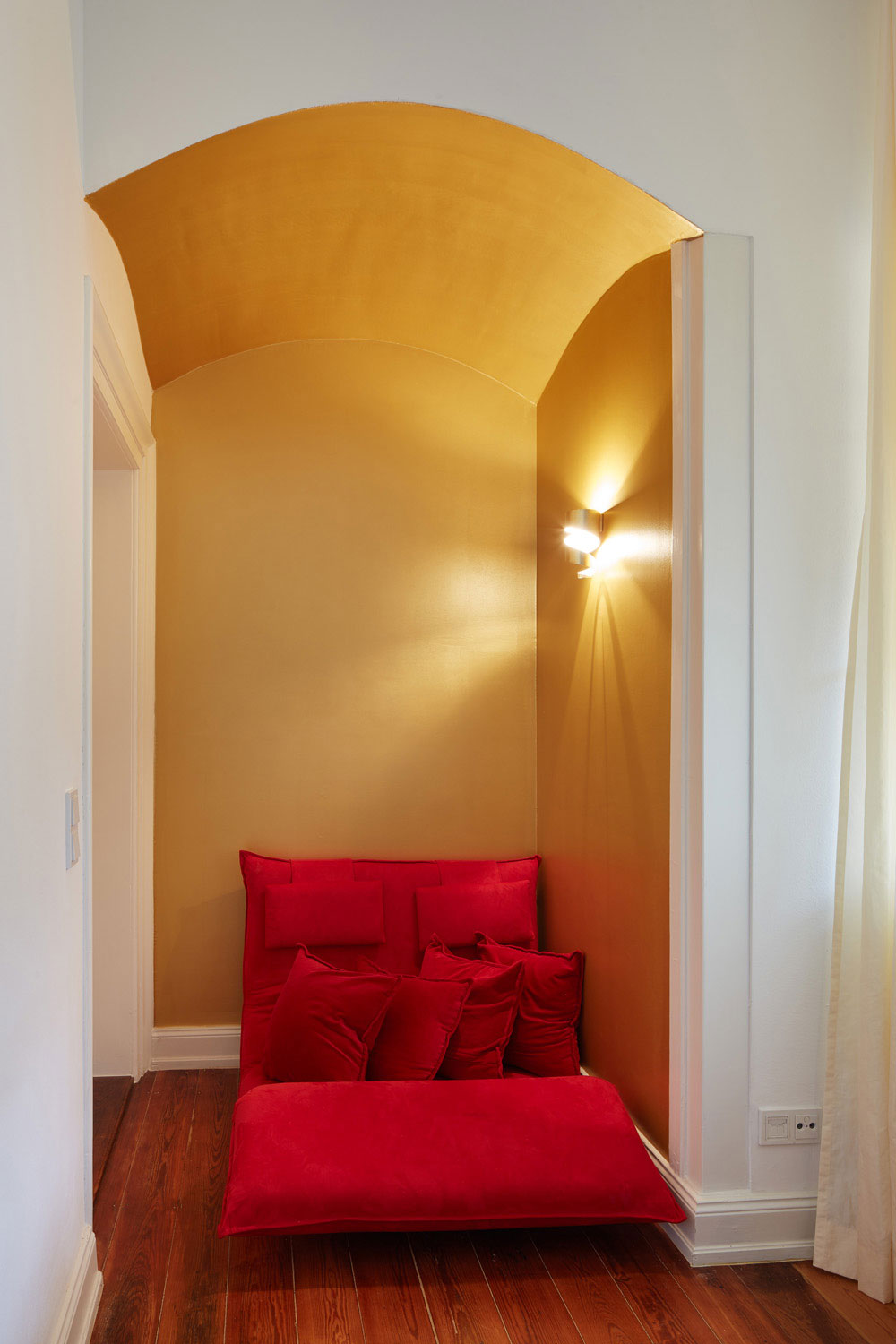 Ziel war der Erhalt und lediglich geringe substantielle Eingriffe und die Entstehung einer neuwertigen, modernen Wohnung.