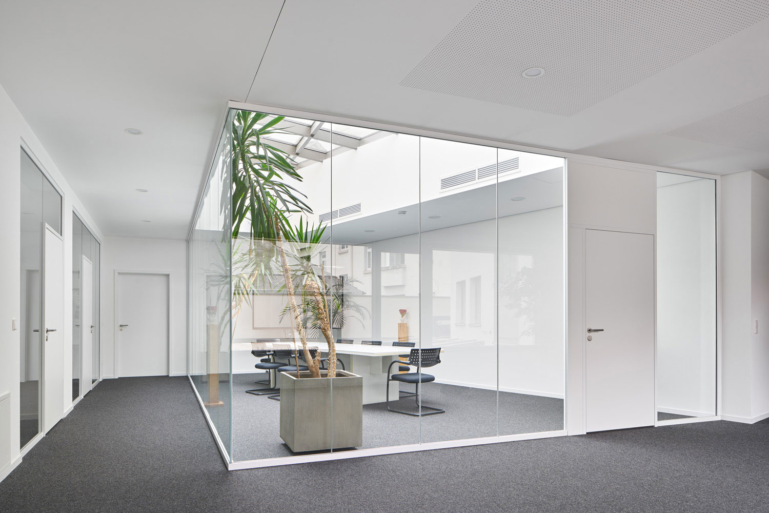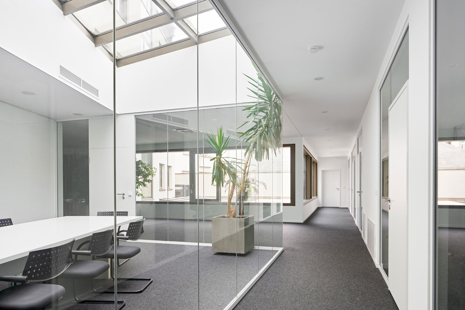 Das hochattraktive Grundstück war planerisch und bautechnisch betrachtet jedoch extrem anspruchsvoll, da es zu 100 % überbaut werden musste. Die dreiseitig vorhandenen Grenzbebauungen aus der Gründerzeit mussten alle aufwendig unterfangen werden. Die Baugrube musste ebenso allseitig mit tiefem, rückverankertem Pfahlwandverbau gesichert werden, wie die angrenzende Straße mit Schwerlast- und Straßenbahnverkehr. Der Baugrund mit schlechtester Tragfähigkeit forderte eine Pfahlgründung, das Grundwasser über Baugrubensohle eine HDI-Sohle.